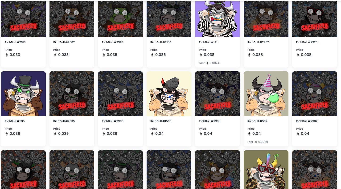The Rich Bulls Club is a collection of 9999 bullish NFTsunique digital collectibles living on the Ethereum blockchain. 32517 Twitter followers Refresh There were no Rich Bulls Club sold in the last 7 days.